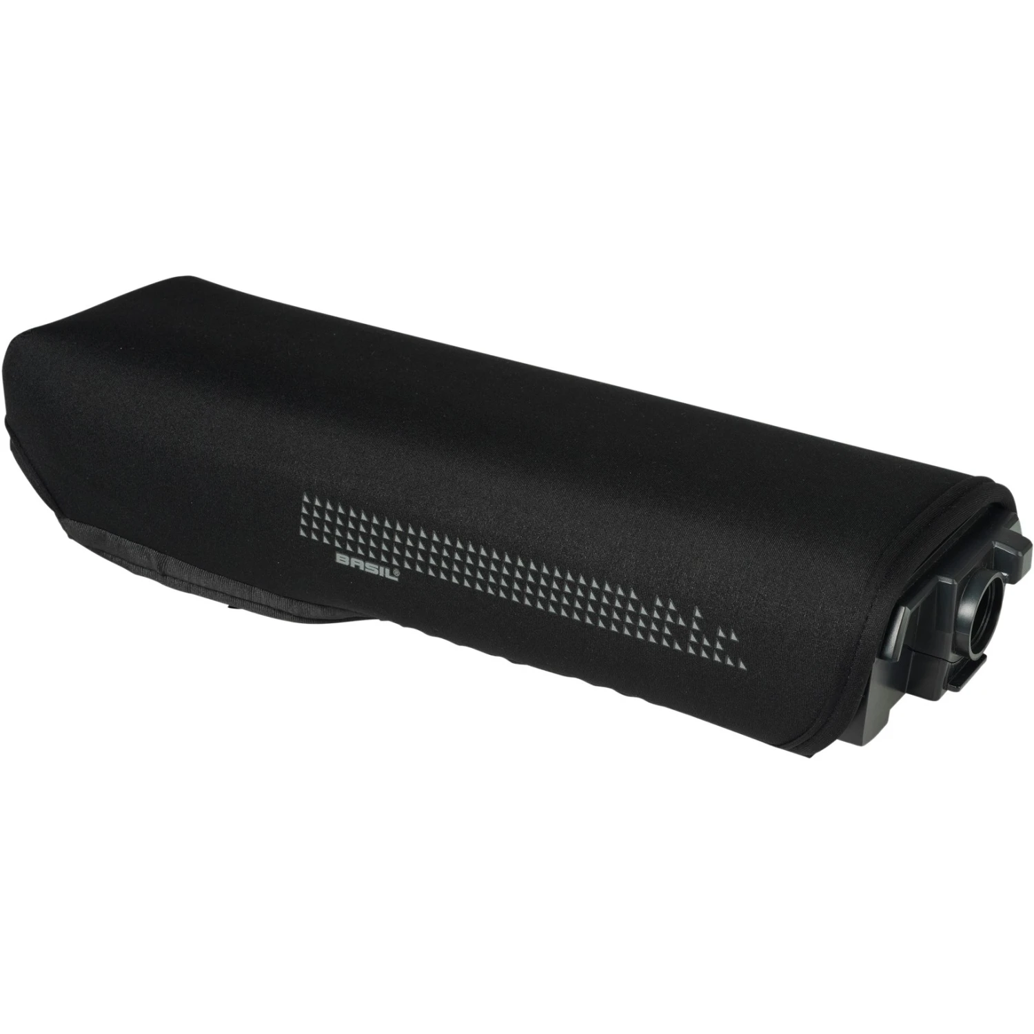 De batterijbeschermer is gemaakt van 4,5 mm dik neopreen. De thermische bescherming verbetert de prestaties van de batterij en zorgt voor een langere levensduur. Het beschermt de batterij ook tegen schokken en schade. De beschermkap is voorzien van de nodige uitsparingen voor een gemakkelijke bediening van de batterij en de resterende gebruiksduur is gemakkelijk af te lezen. De hoes is bevestigd met klittenband. Basil raadt u aan het batterijklepje te verwijderen wanneer u het oplaadt.