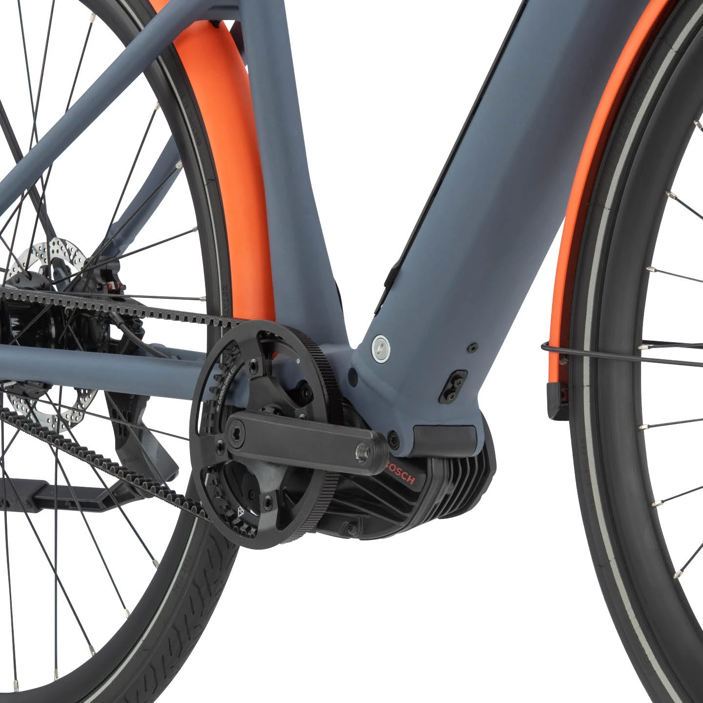 Het hoogwaardige aluminium frame is licht, veelzijdig en voorzien van een poedercoating voor maximale duurzaamheid. De natuurlijk ondersteunde BOSCH Performance CX motor met riemaandrijving in combinatie met het extra rijcomfort van de ICS MTT stuurpen en het premium verlichtingssysteem geven u dat unieke elegante gevoel van snelheid en veiligheid tegelijk.