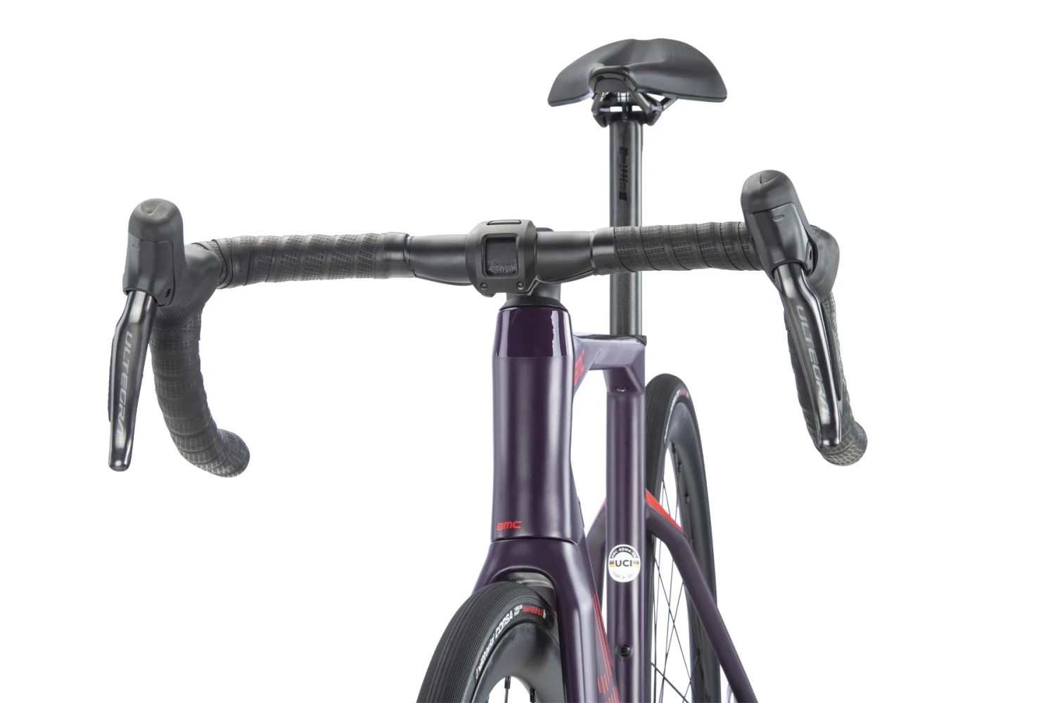De BMC ICS2 stuurpen en het compacte carbon stuur werken naadloos samen met de Shimano Ultegra Di2 12-speed groep. De Tubeless Ready 35 mm CRD-321 SL Carbon wielset en de compacte versnellingen zorgen voor maximale snelheid – overal.