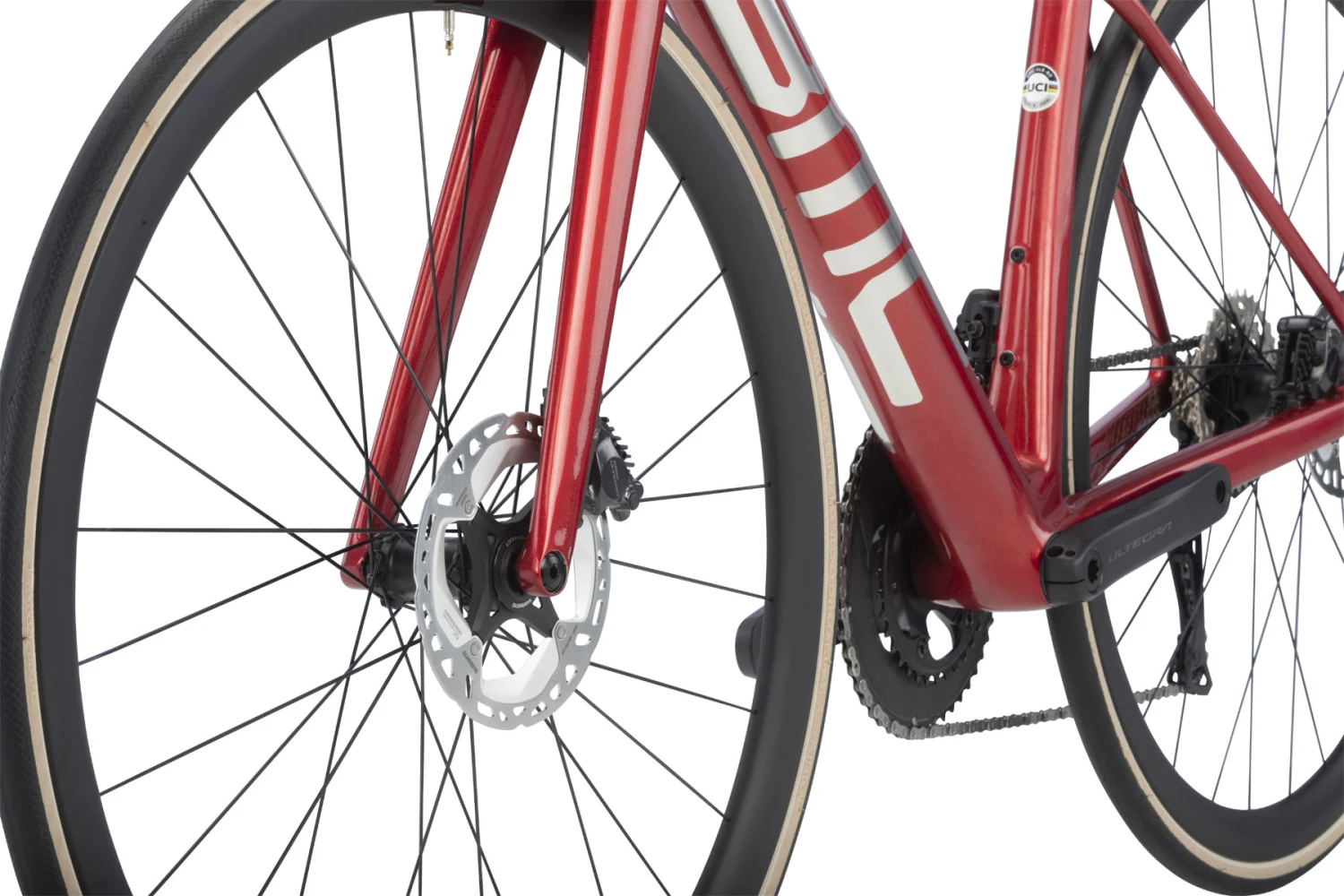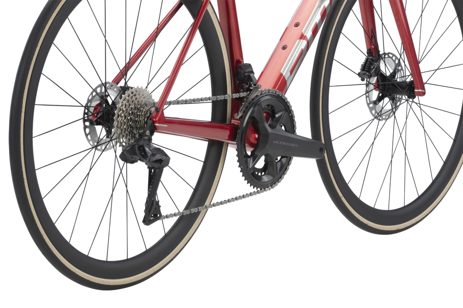 De opvallende kenmerken van de Teammachine SLR ONE zijn een ICS1 stuurpen, D-Shape carbon zadelpen, Shimano Ultegra Di2 2×12-speed groep en 35mm CRD-351 carbon tubeless wielen.