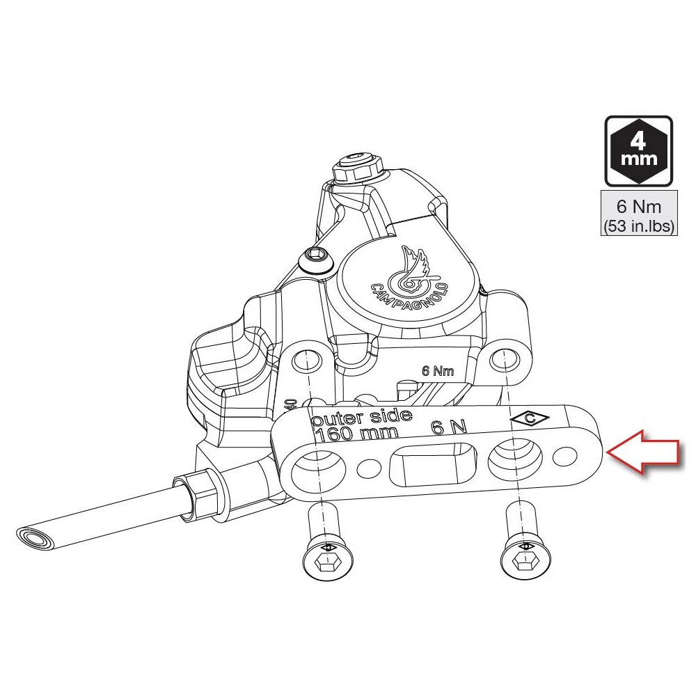 Flatmount schijfremadapter voor montage van de Campagnolo Ekar remklauw achter op vorken of achterframes met flatmount bevestigingen.