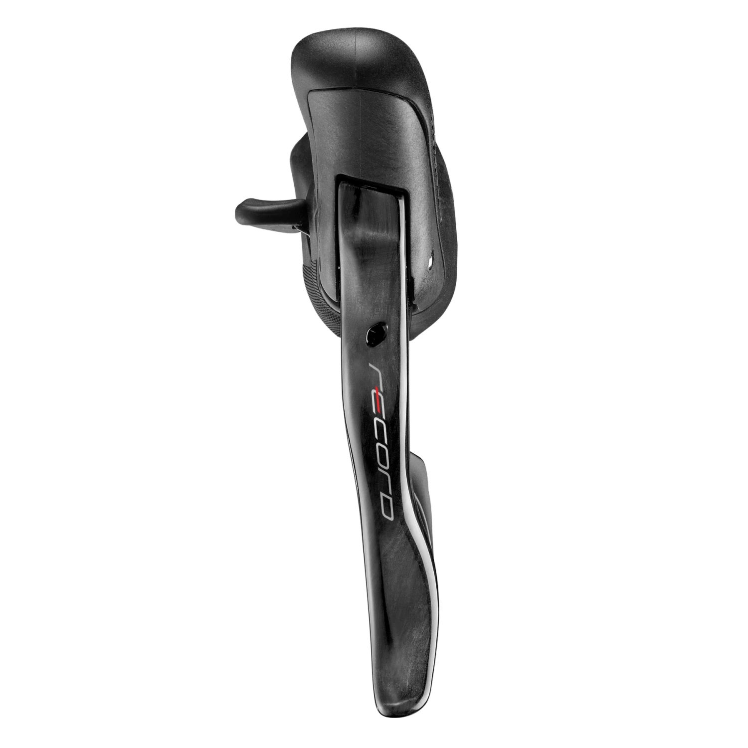 De Record Disc Brake 2×12-speed Ergopower rem-/schakelhendels maken gebruik van beproefde Campagnolo technologie en zijn onmisbaar voor fietsers die langer op het zadel zitten: zorgt voor een ergonomische steunpositie en een comfortabele en veilige grip, terwijl de functie aan elke hendel een functie toewijst om schakelfouten te voorkomen. Met het kunt u tegelijkertijd 3 tandwielen terugschakelen en 5 tandwielen opwaarts schakelen.