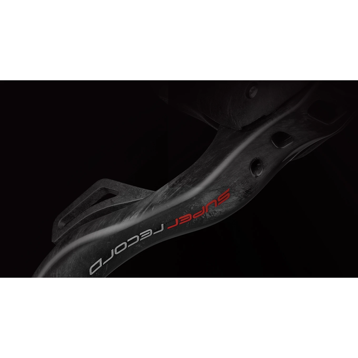 Vorm en functionaliteit stonden centraal bij het ontwerp van de Campagnolo Super Record EPS Disc Brake 2×12-speed rem-/schakelhendel. Om de meest efficiënte en effectieve ergonomie te bereiken heeft het Campy Tech Lab gedetailleerde studies uitgevoerd. De herziene remhendel en de plaatsing van de terugschakelhendel bieden de fietser een intuïtief, praktisch en comfortabel “bedieningscentrum”.