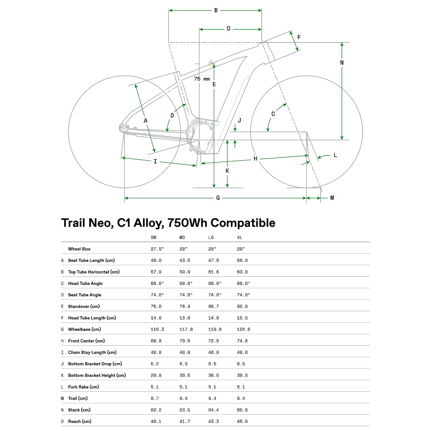 De batterij en de aandrijving van de Trail Neo zijn zo laag en centraal mogelijk in het frame geplaatst, zodat de 750Wh batterij ook in kleine framematen kan worden geïnstalleerd. De uitgebalanceerde geometrie van de Trail Neo geeft je veel vertrouwen, zowel off-road als tijdens je dagelijkse avonturen in de stad. Met deze fiets kun je nu vol vertrouwen nog verder en sneller rijden dan ooit tevoren. De Trail Neo doet geen concessies aan de uitrusting: stevige hydraulische schijfremmen, een breed stuur en een korte stuurpen.