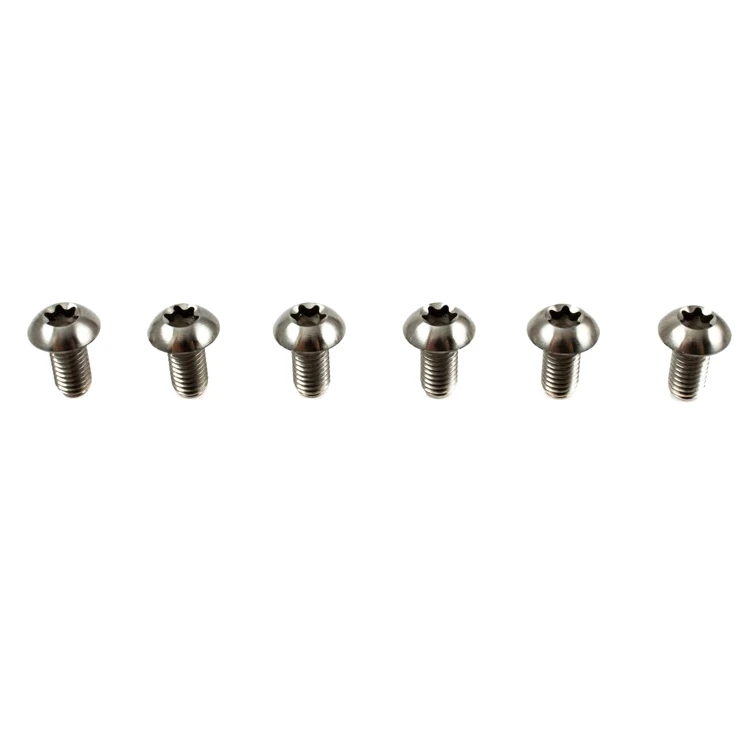 Superlichte schroefset voor het monteren van 6-gaats remschijven. Gemaakt van titanium met graad 5. De levering omvat zes Torx-schroeven met T25-aansluiting (ISO 7380).