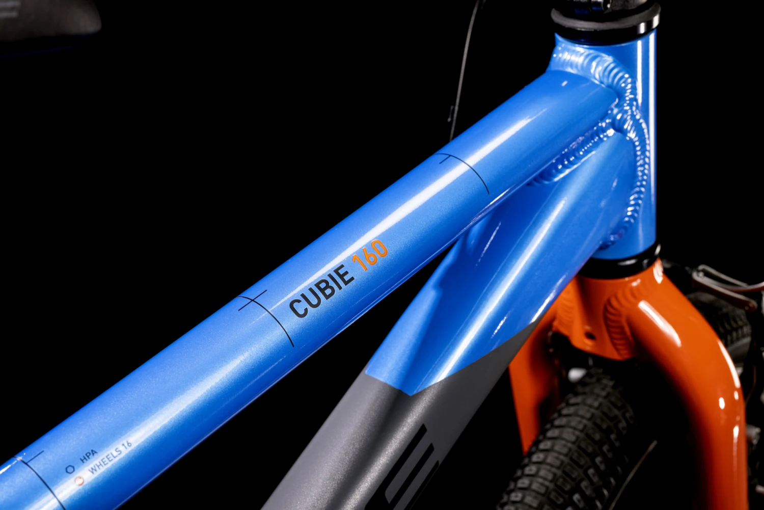 De gloednieuwe CUBE Cubie 160 is de perfecte fiets om de wondere wereld van het fietsen te betreden – een mountainbike op kinderformaat met alle chicanes. Bijvoorbeeld de aluminium vork voor een laag gewicht en de gebruiksvriendelijke velgremmen op het voor- en achterwiel.