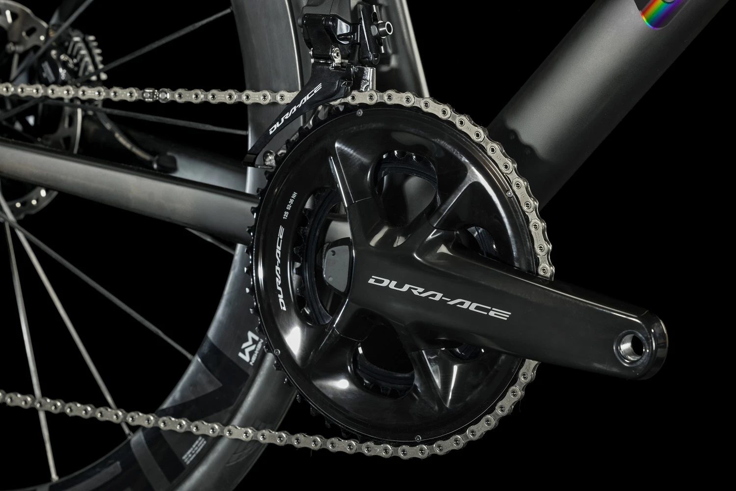 De hoogwaardige Shimano Dura Ace Di2 schakelgroep inclusief Powermeter brengt uw kracht efficiënt over van uw benen op de weg en maakt nauwkeurig en veilig remmen mogelijk. Je wilt een snelle, extreem snelle racefiets om naar de sterren te reiken? Hier is het!