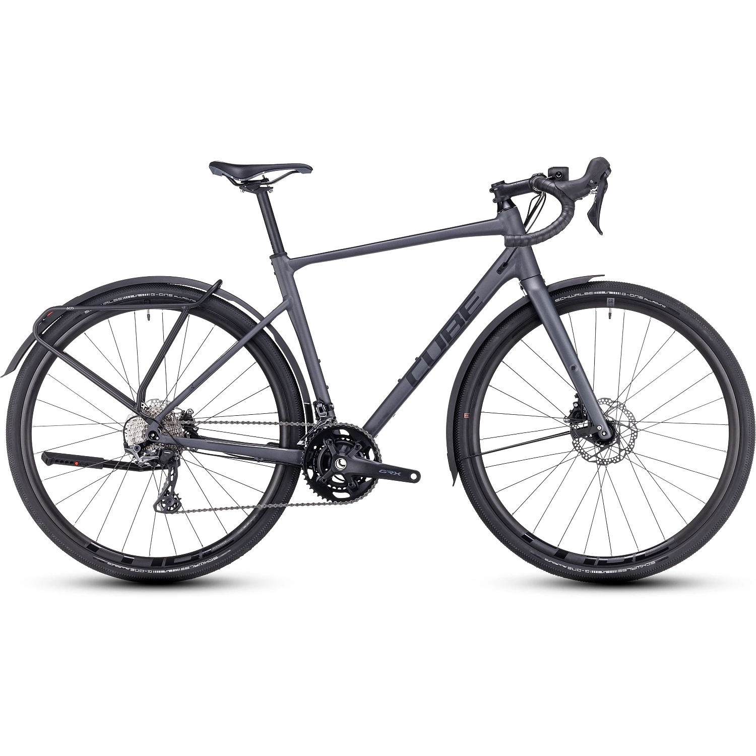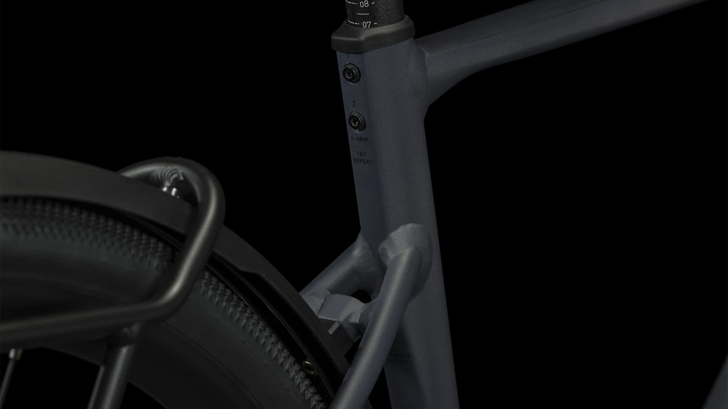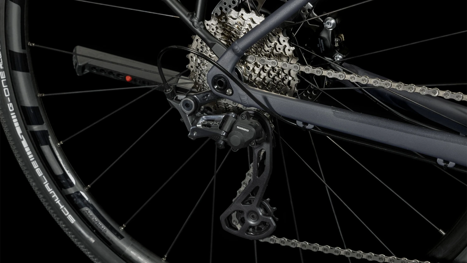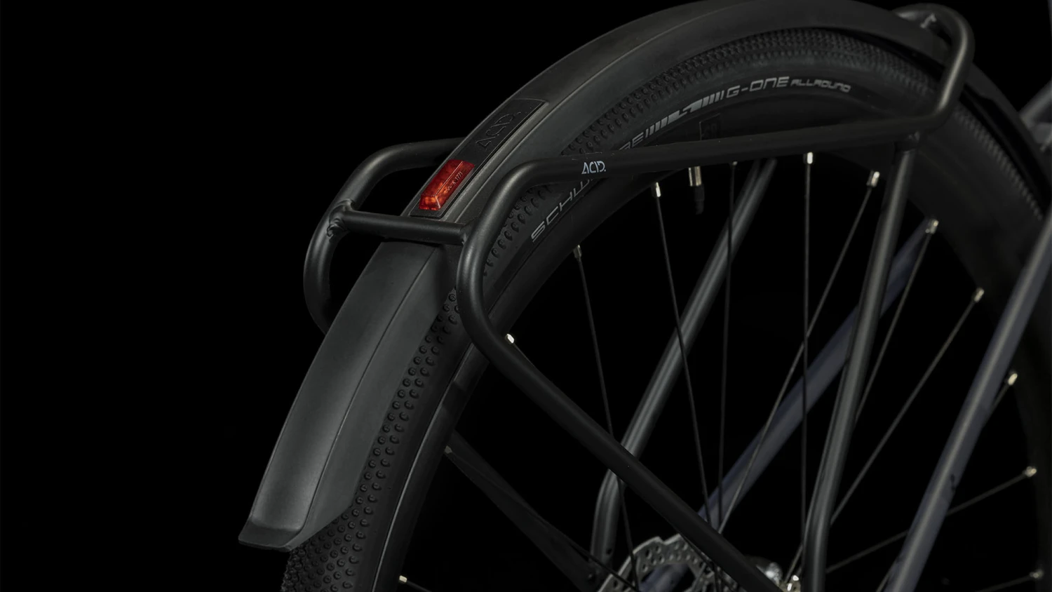 De CUBE Nuroad Race FE heeft al het goede van de Nuroad Race, maar dan ‘fully equipped’ met spatborden, verlichting, een achterstandaard en een bagagedrager met geïntegreerd achterlicht. Cruciale elementen bij het creëren van deze alleskunner-met-racestuur zijn de 40 mm banden van Schwalbe.Â