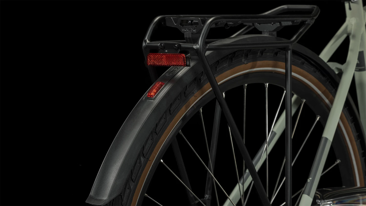 Bij het afdalen kun je vertrouwen op de krachtige schijfremmen: die remmen de fiets in natte omstandigheden veel beter – en dus veiliger – af dan normale remmen. Het uitrustingspakket van de Touring ONE omvat ook lange spatborden, een fraai geïntegreerd bagagerek, een zijstandaard en een dynamo aangedreven verlichtingssysteem. Daarnaast is er volop rijcomfort in de vorm van een verende voorvork en een verende zadelpen die oneffenheden gladstrijken.
