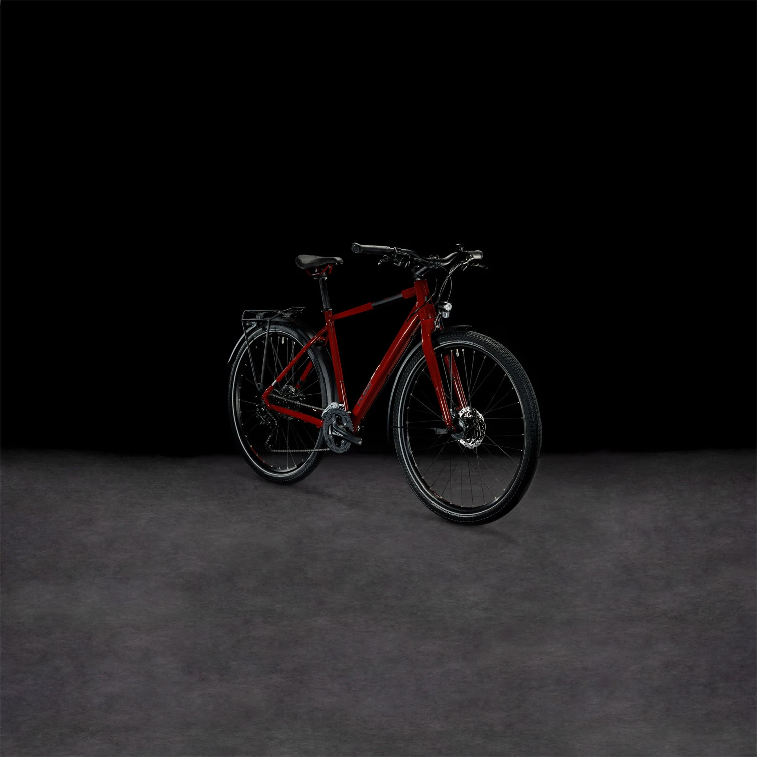 Als je kiest voor een CUBE Travel, boek je het avontuur gratis, want deze fiets wordt geleverd met alles wat je nodig hebt voor een ontdekkingstocht: halfgeïntegreerde bagagedrager, extra lange spatborden, zijstandaard en een dynamo aangedreven lichtsysteem op het voorwiel.