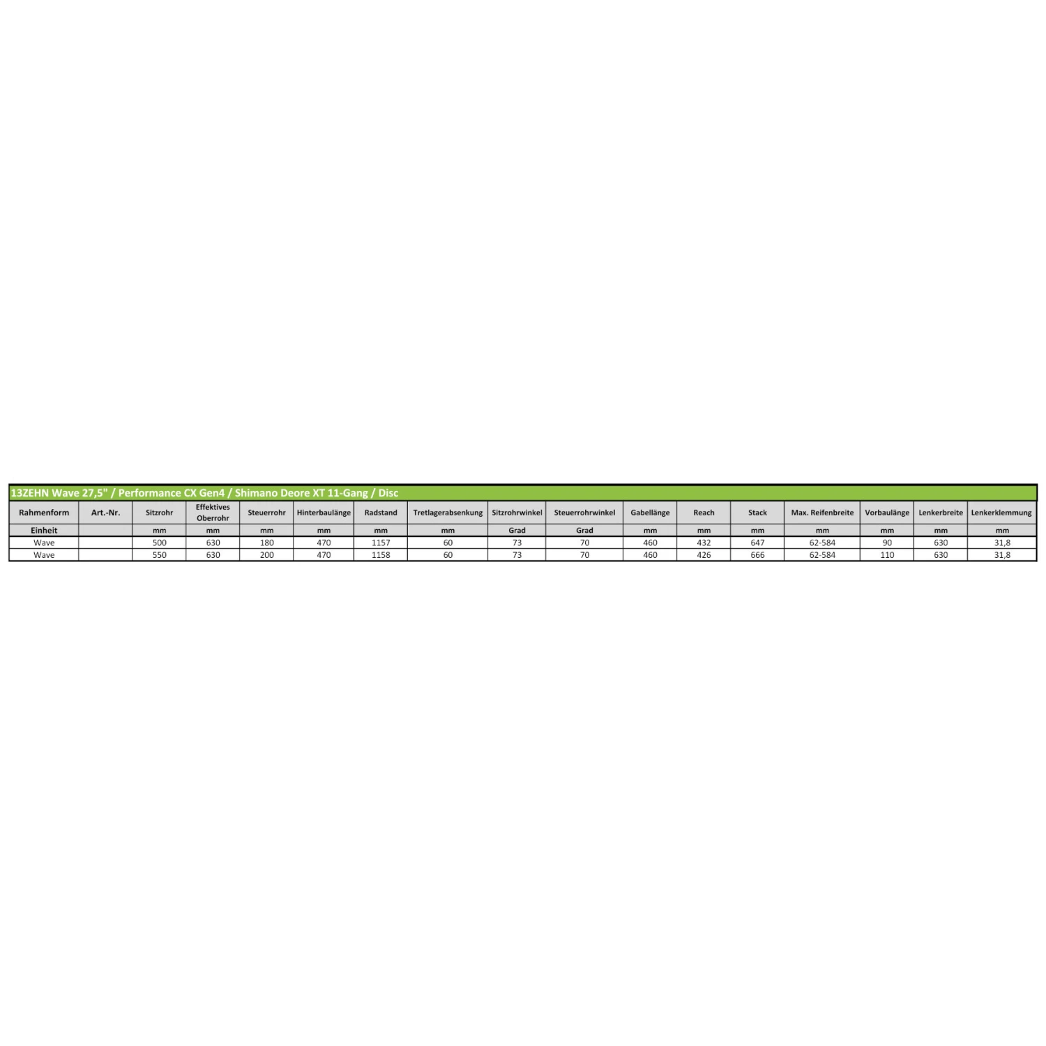 De 13ZEHN Wave epowered by BOSCH e-bike, verkrijgbaar in drie framevormen, is het trekkingmodel van de “hogere middenklasse”. Hij maakt indruk met zijn volledig geïntegreerde framedesign en zijn sportieve functionaliteit en hoogwaardige algemene uitrusting. De 13ZEHN Wave voelt zich net zo thuis in een stedelijke omgeving als op onverharde wegen.