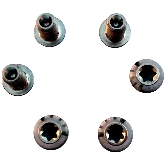 De Extralite boutenset voor 6-gaats remschijven wordt geleverd met 6x M5-9mm Torx bouten van GRD5 titanium.