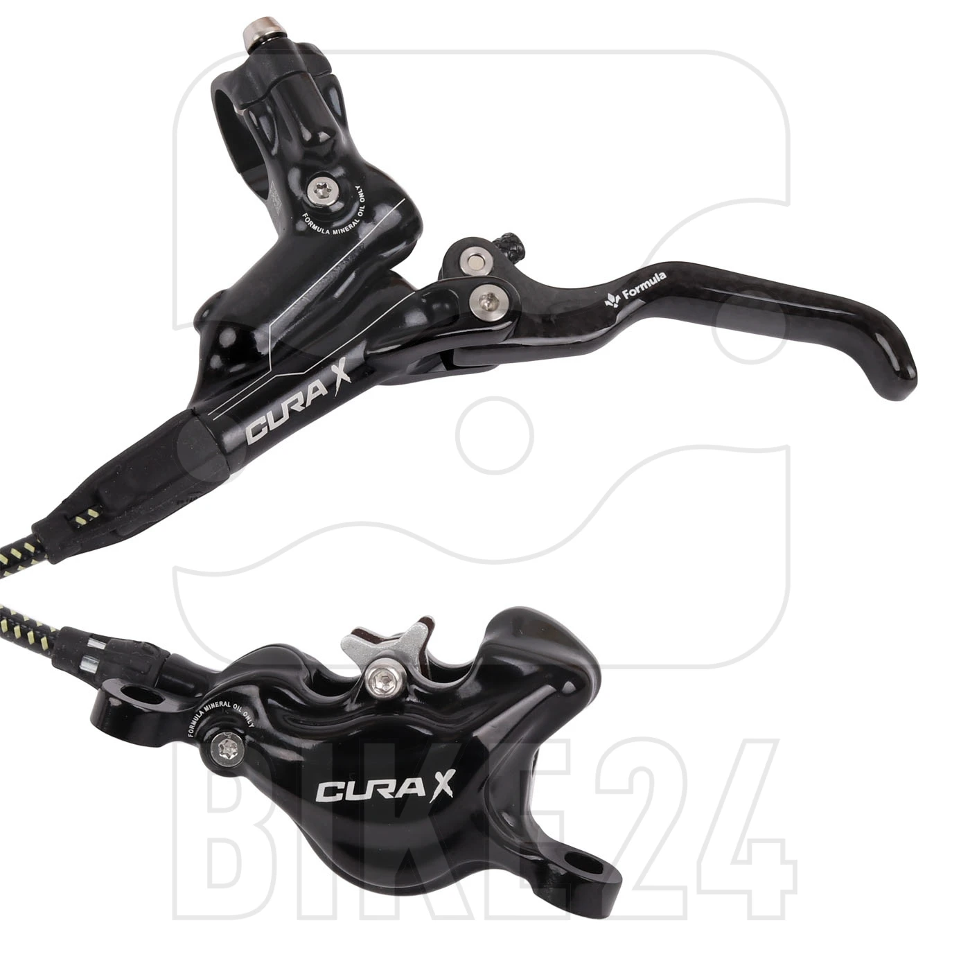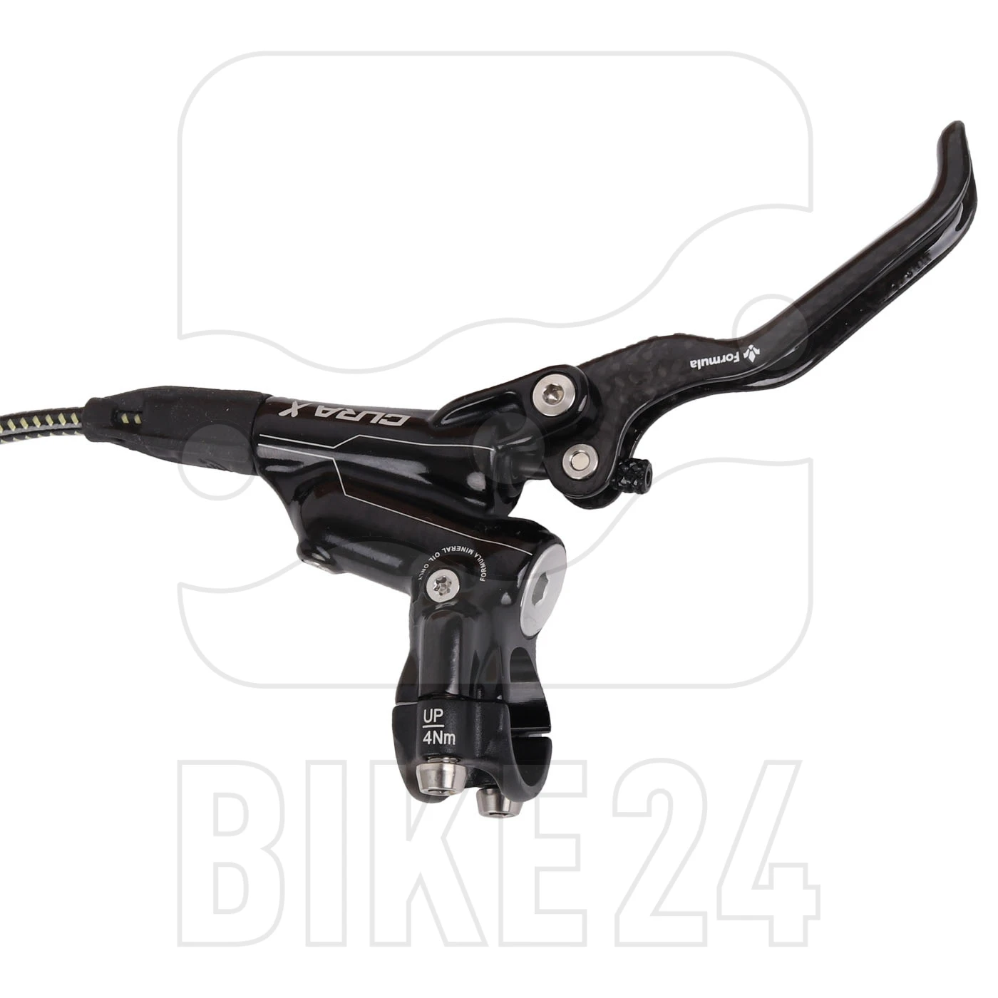 De Formula Cura X is een lichtgewicht high-end schijfrem voor Cross Country en XC Race. De axiale hoofdremcilinder van de carbon remhendel in flip-flop design (kan links of rechts worden gemonteerd) maakt ergonomische en intuïtieve modulatie van de remkracht mogelijk, terwijl de tweedelige postmount remklauw met 24 mm slave-zuiger in elke situatie krachtig kan aangrijpen.