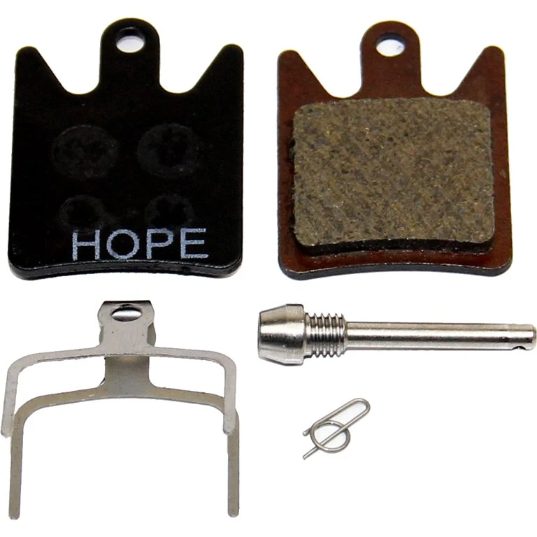 Gesinterde, metalen remblokken voor Hope V2 remklauwen. Metalen remblokken hebben een groter remvermogen dan organische. De slijtage van de pads is ook lager. Zij hebben echter de neiging te piepen in natte omstandigheden en genereren een hogere thermische belasting van de rem.