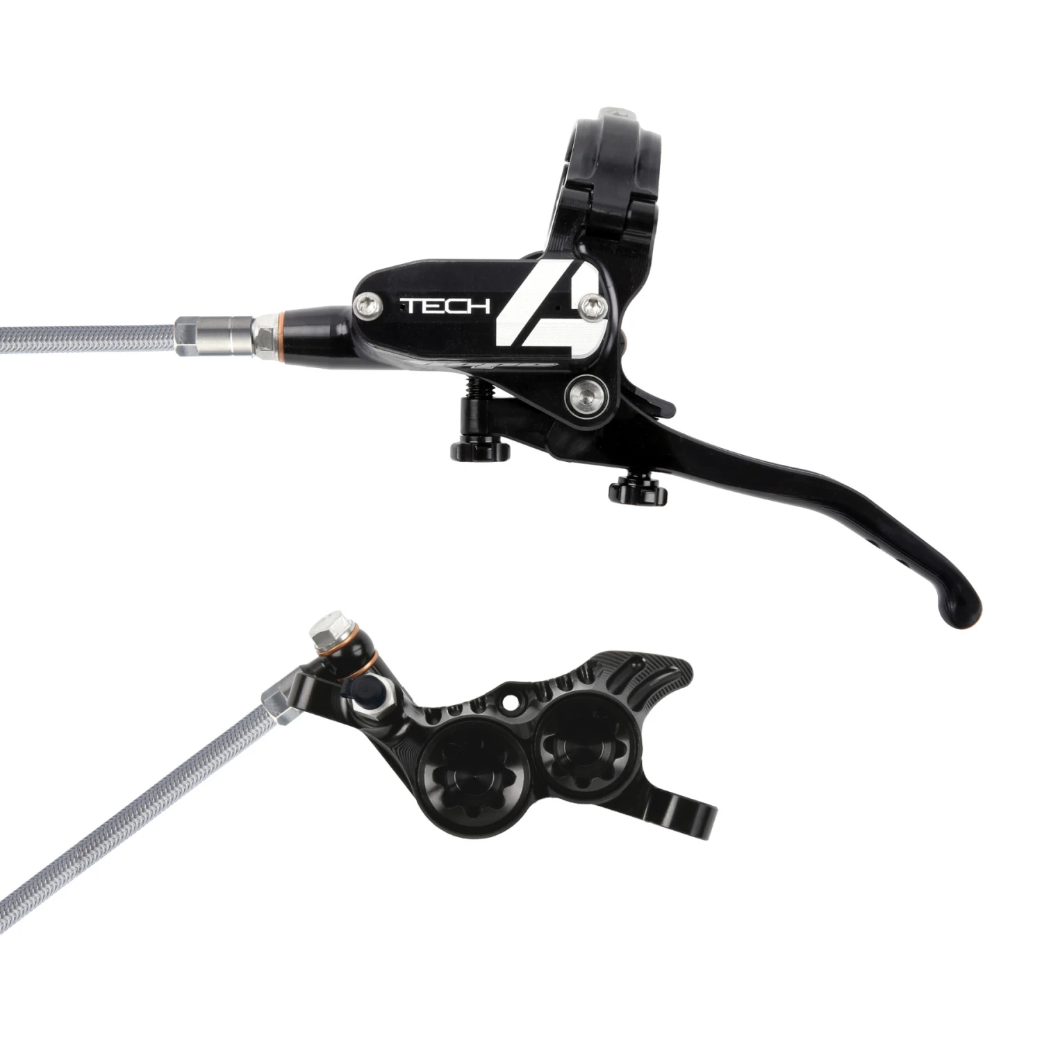 De remklauw is post-mounted gemonteerd en de vloeistoftoevoer wordt verzorgd door een hoogwaardige stalen gevlochten leiding. Deze heeft een totale lengte van 1700 mm en kan worden ingekort om op uw eigen fiets te passen. Daardoor kan hij worden gebruikt als achter- of voorrem.