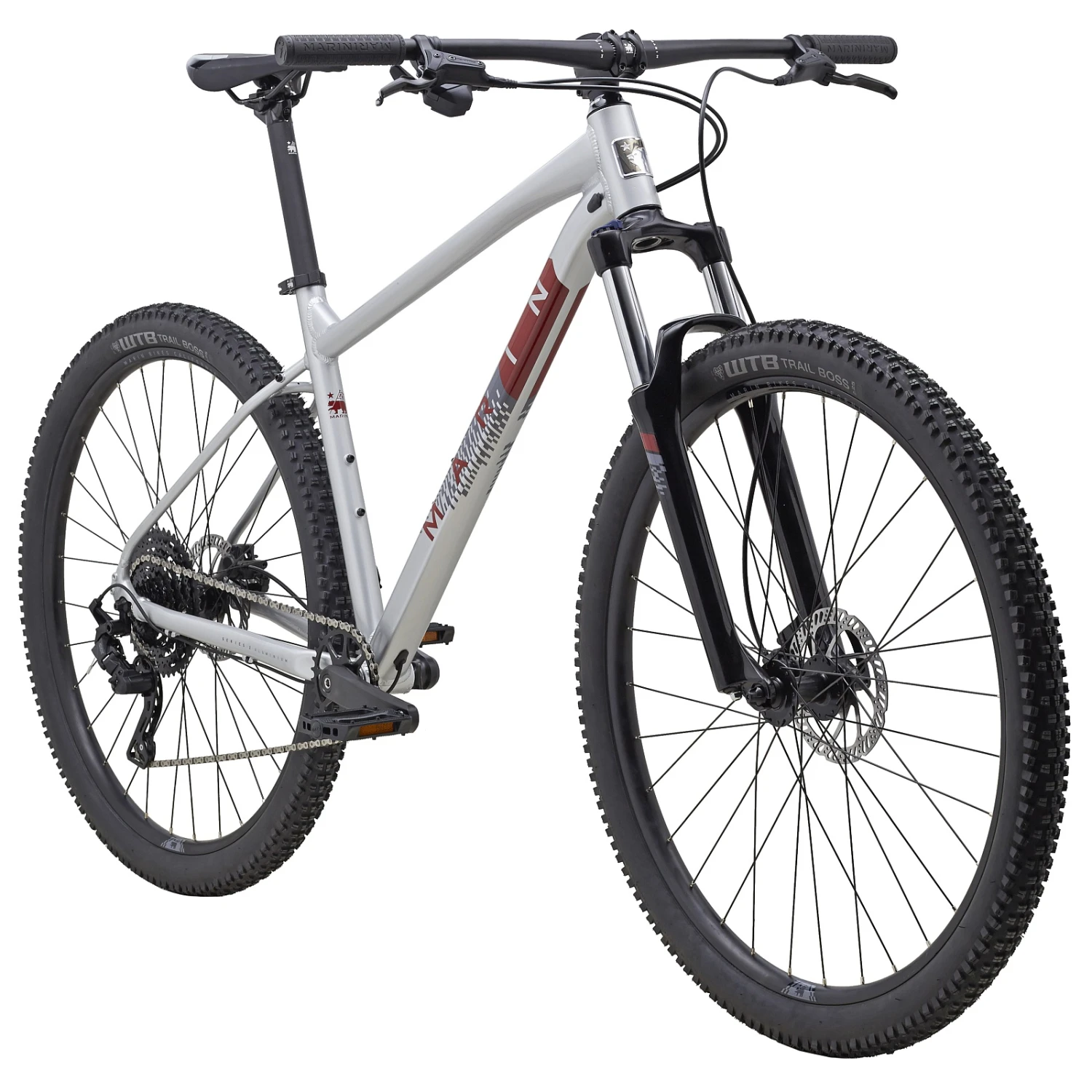 Marin BOBCAT TRAIL 4 – 27.5″ Mountain Bike – 2023 – Polish Silver – Dark Red