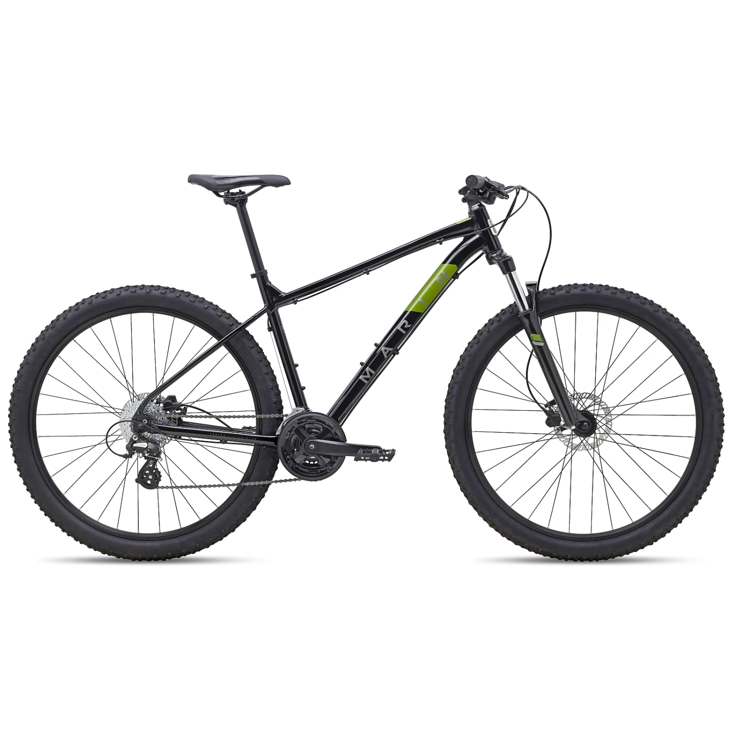Maatspecifieke 27,5″ of 29″ wielen, schijfremmen en 2,25″ MTB-banden zorgen voor comfort, tractie en controle op elk ruw terrein.