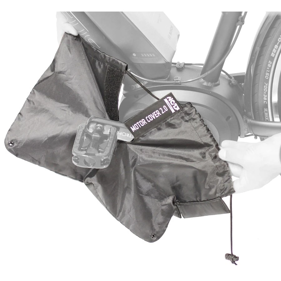 De NC-17 motorhoes om het centrale deel op de e-bike te beschermen. De universele beschermhoes van waterdicht nylon beschermt alle gangbare middenmotoren van e-bikes tegen spatwater en directe waterinslag tijdens transport op het autodak of aan de achterzijde.
