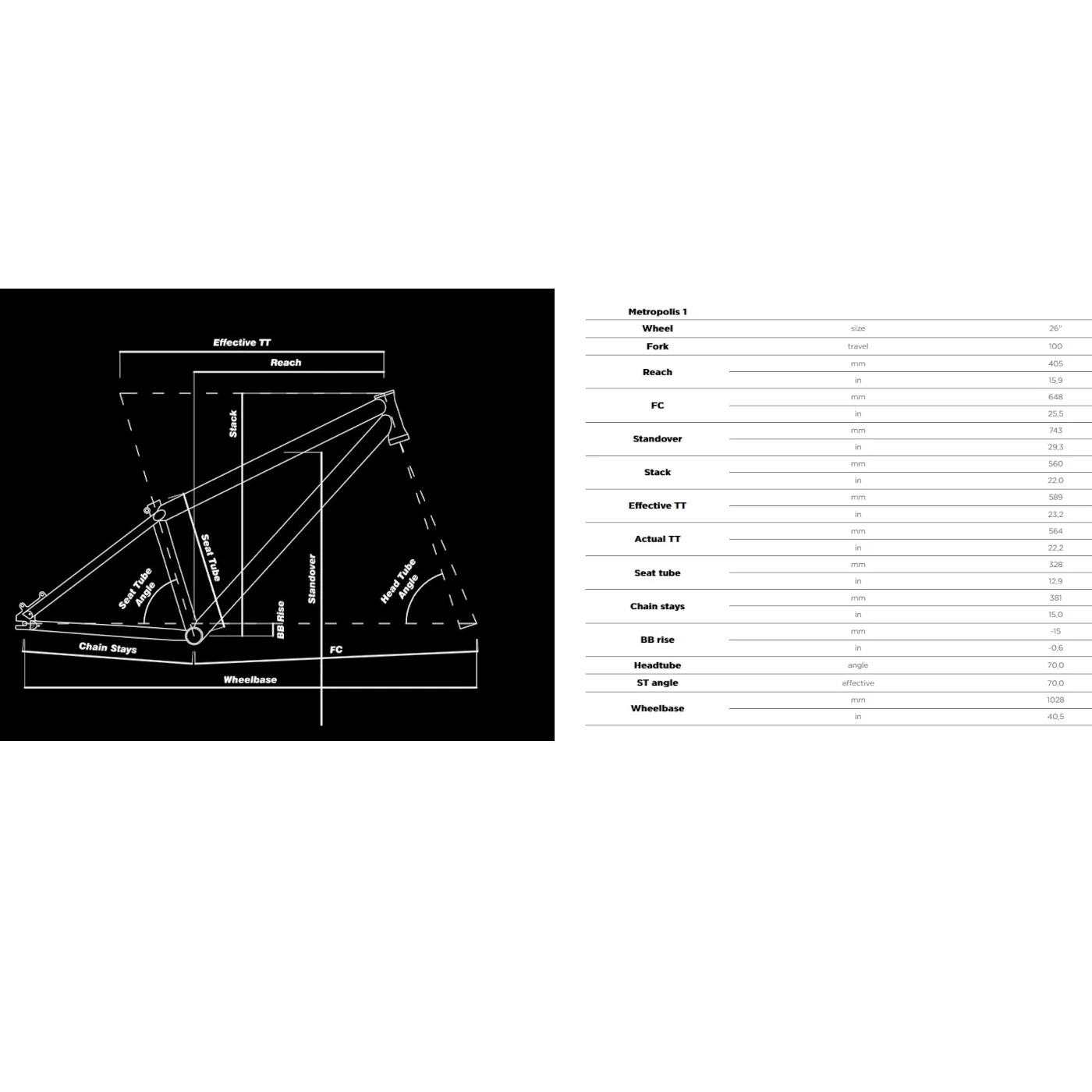 De Metropolis 1 is de topversie en beschikt over de krachtige Marzocchi Z2 verende voorvork, een krachtige hydraulische schijfrem op het achterwiel en de Race Face Aeffect crank.
