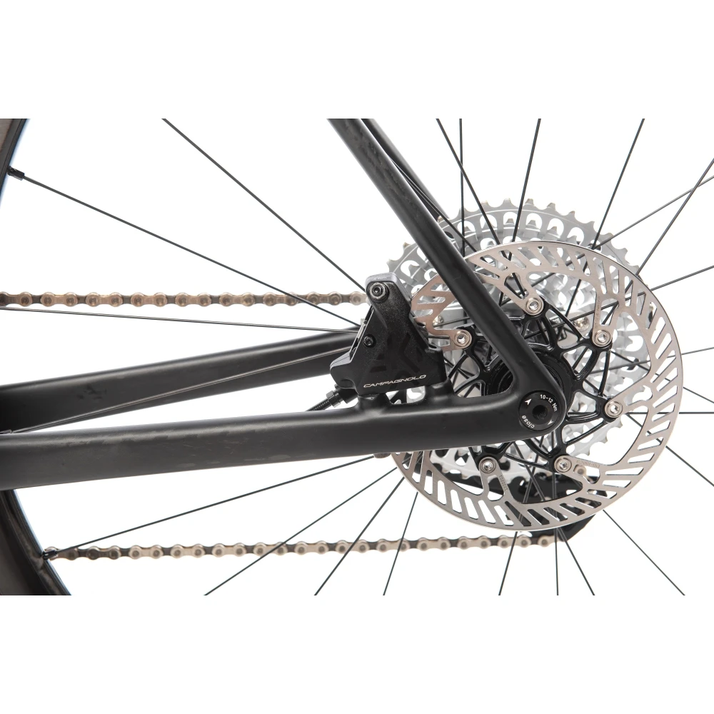 Qua acceleratie heeft de Anemos Masterpiece veel gemeen met de Atmos Masterpiece. Hij sprint weg alsof er geen morgen is, en is ongelooflijk snel op snelheid. Ongeacht de situatie, op het vlakke of bergop, de Anemos Masterpiece genereert consequent stuwkracht uit elke trap. Als hij dan op snelheid is, kan hij dat met hoge efficiëntie vasthouden. Ook de zeer lichte carbon wielen van Campagnolo dragen daaraan bij. Met een kaakbreedte van 25mm harmoniëren ze perfect met de 40mm Schwalbe G-One R banden.
