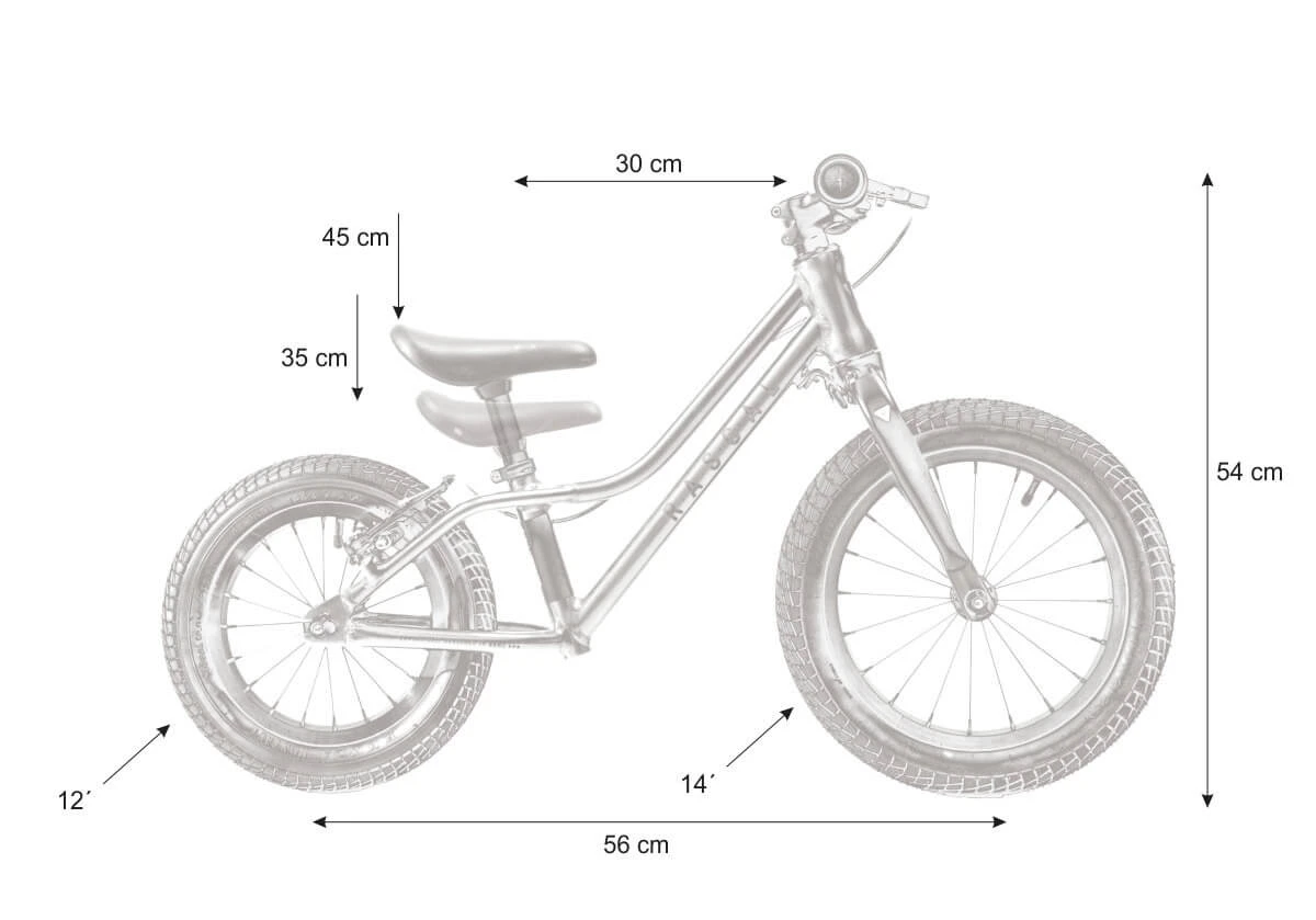 Het unieke ontwerp heeft verschillende wielmaten. Een groter voorwiel (14″) verhoogt de veiligheid en stabiliteit van het wiel voor beginners, terwijl het kleinere achterwiel (12″) een diepere instap mogelijk maakt voor kinderen vanaf 2 jaar.