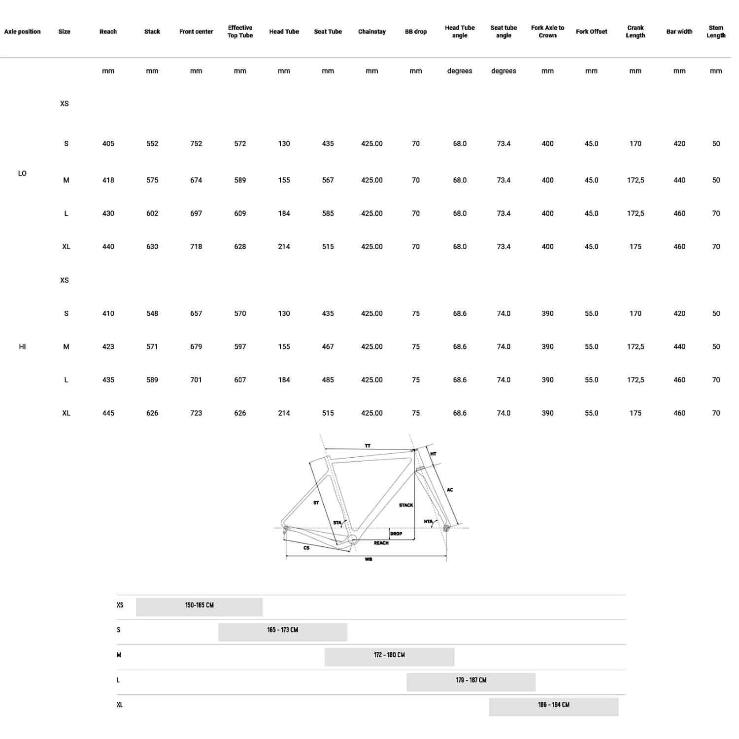 De ontspannen balhoofdbuishoek zorgt voor een lang middenvoor en de broodnodige stabiliteit, terwijl de korte stuurpen het rijgedrag scherp houdt. De comfortabele rijpositie en lage standoverhoogte geven u het vertrouwen om de ruigste grindwegen en trails te bedwingen. Met een ruime keuze aan carbon, aluminium en stalen frames blijven geen wensen onvervuld.