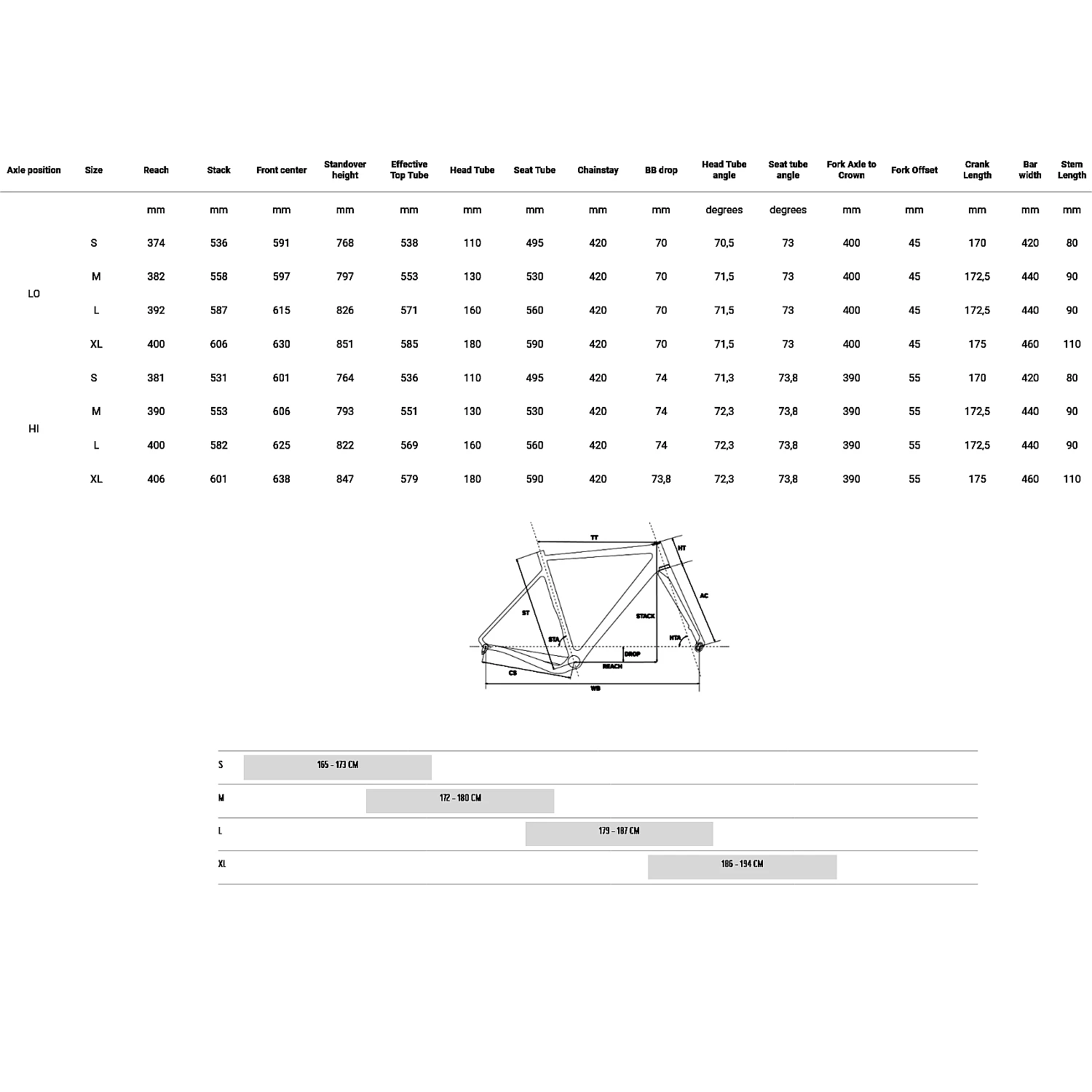 - Bandenspeling voor gravelbanden: 700x45c of 650B x 2,1″.