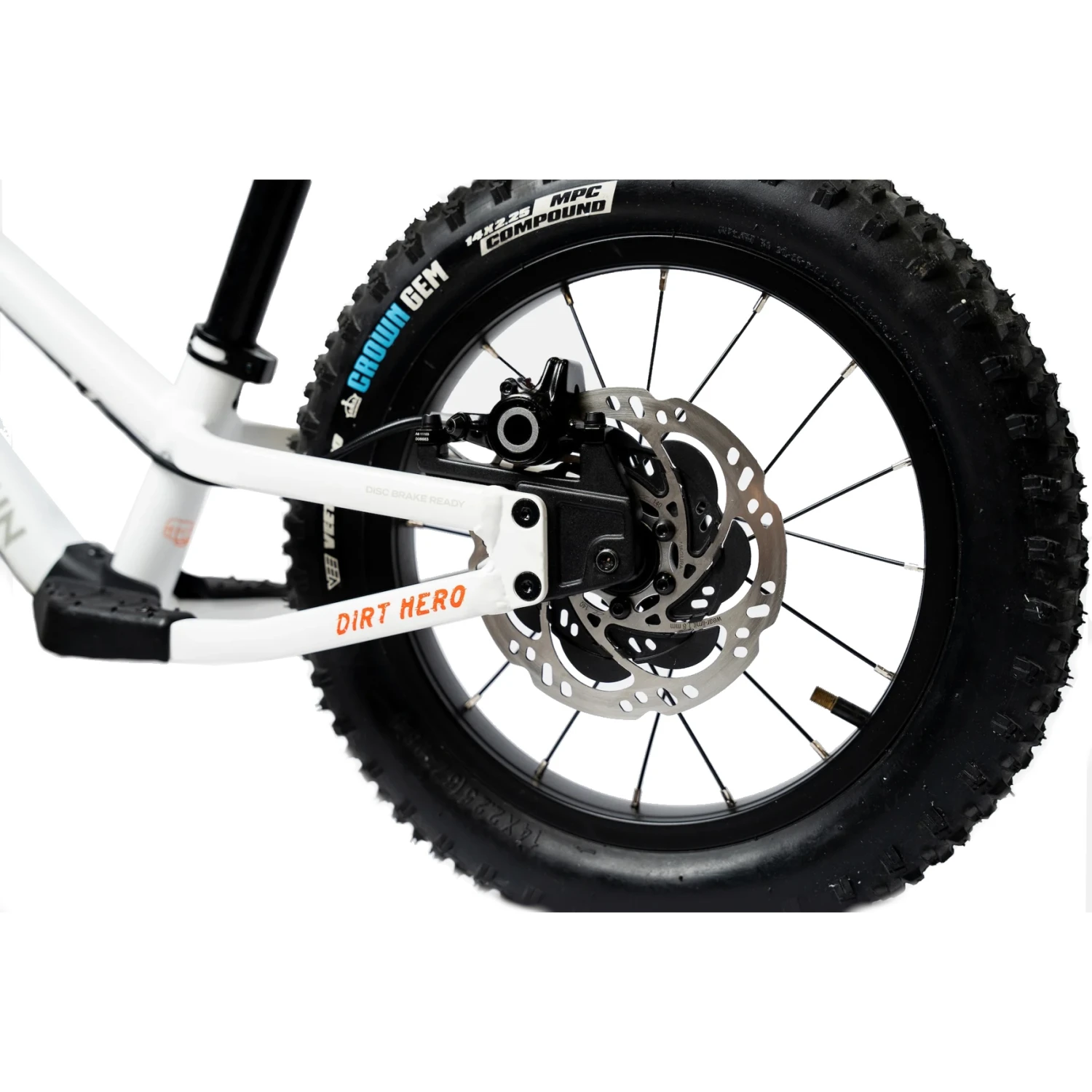 Het Dirt Hero offroadwiel is een verkleinde enduromachine die speciaal is ontworpen om paden te openen voor kinderen op wielen. De Dirt Hero werkt met 12″ en 14″ wielen, het biedt in feite 2 wielen in 1.