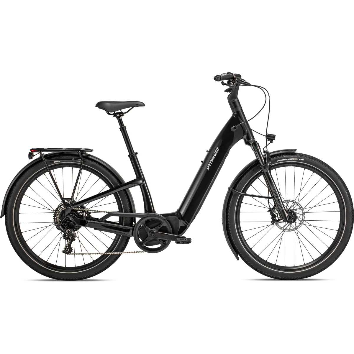 Uitgerust met Specialized DRYTECH spatborden, LED voor- en achterlichten en HD bagagedrager met maximaal 27kg laadvermogen. Het rek is compatibel met kinderzitjes en bijpassende aanhangers.