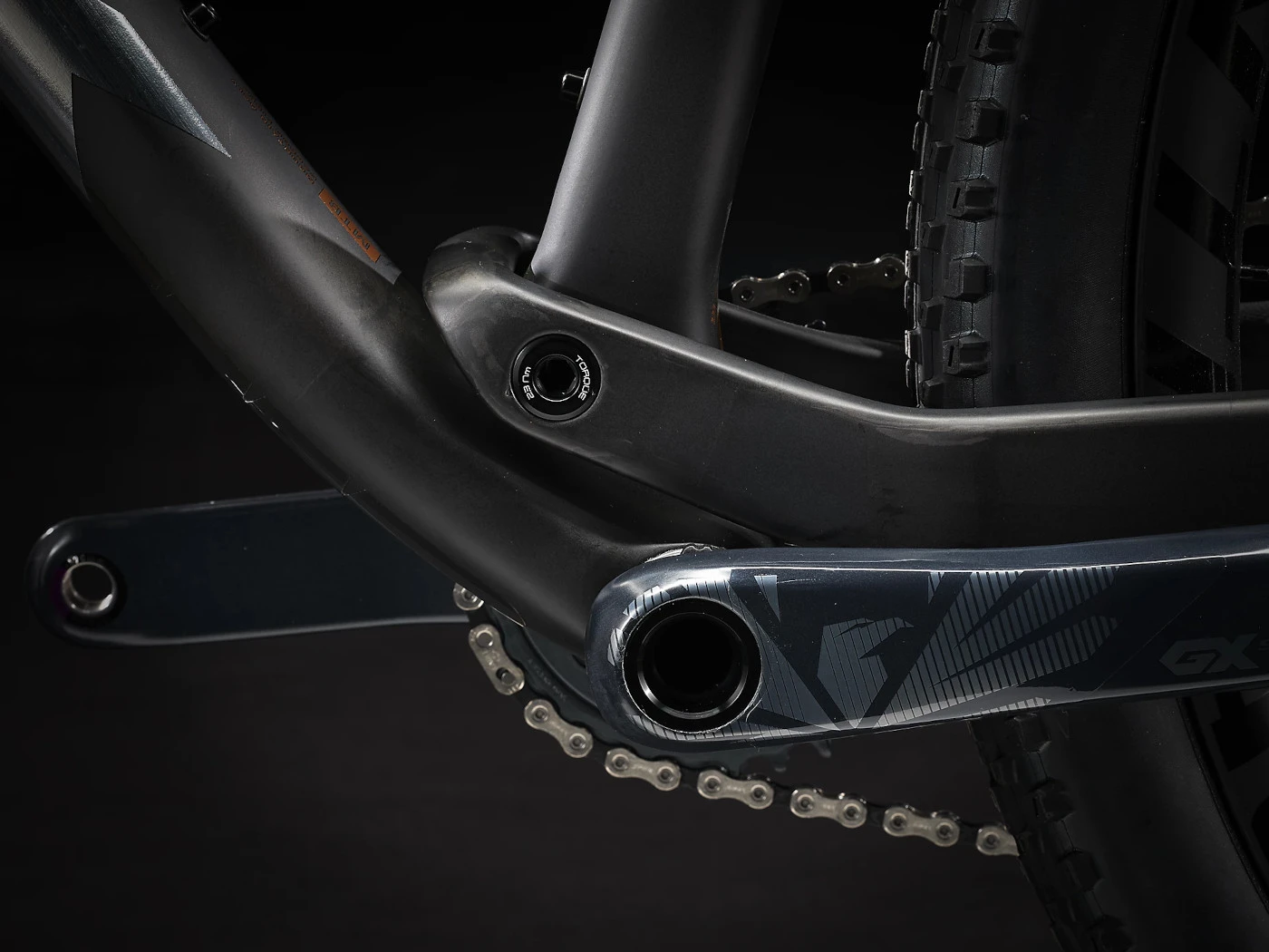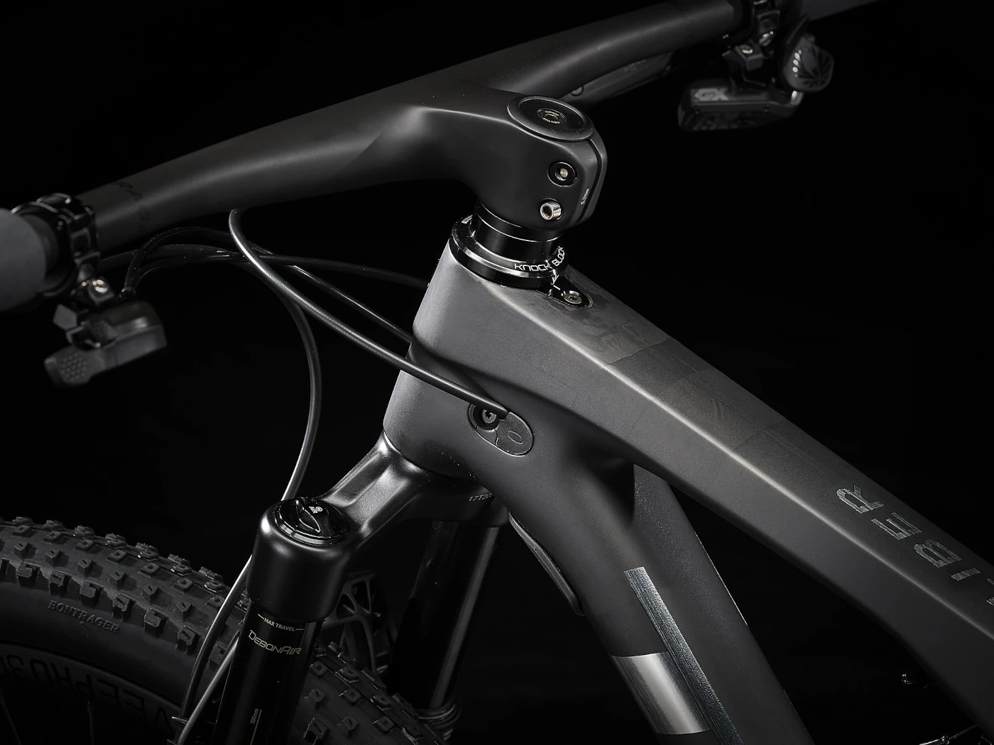 - – Trek’s MTB-specifiek carbon is ontworpen om de extreme eisen van off-road racen te weerstaan. Met behulp van geavanceerde analyses zijn onze ontwerpers in staat een frame te maken met de beste mix van licht gewicht en hoge wendbaarheid, met voldoende flexibiliteit in de seatstays om de noodzaak van achtervering te elimineren.