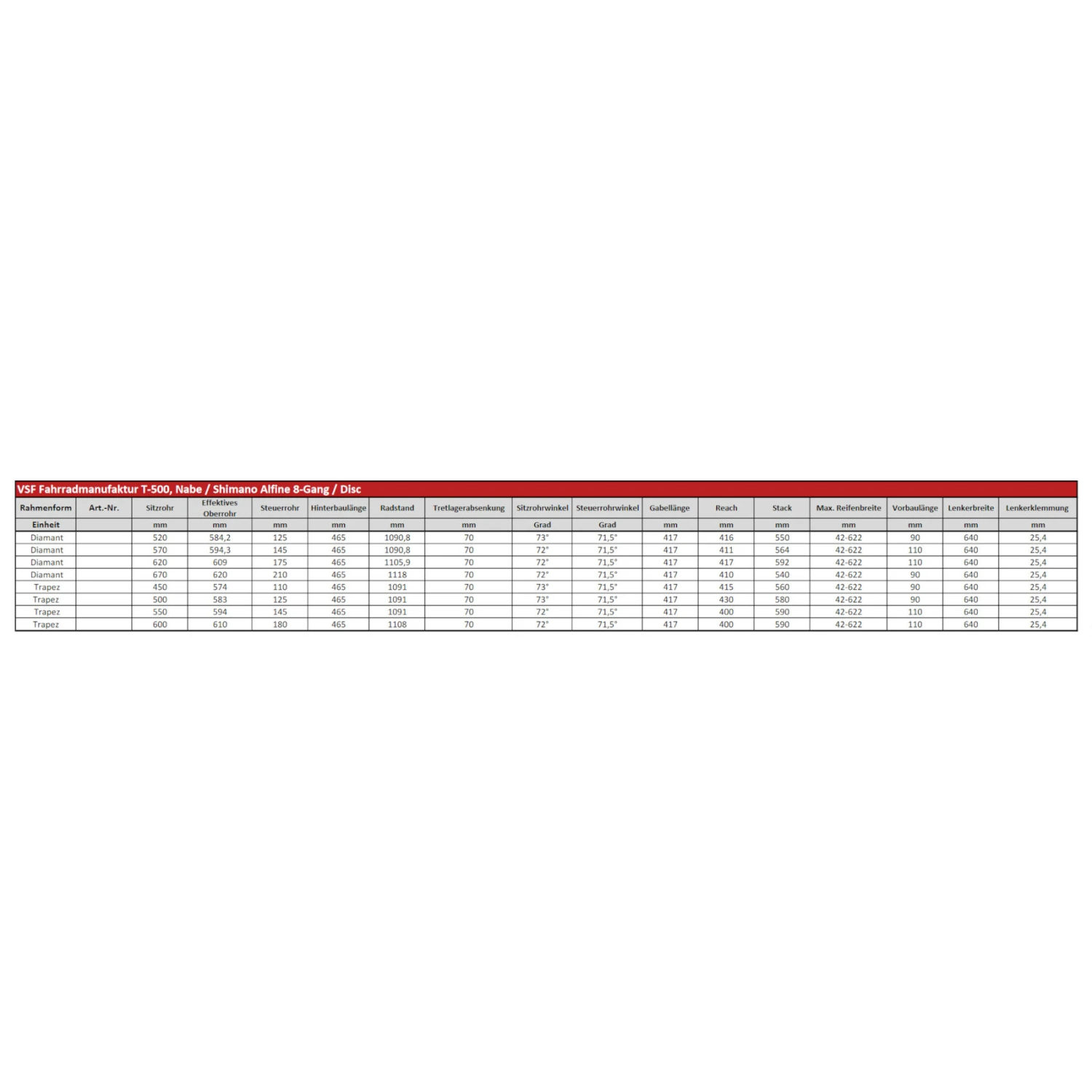 Niet zelden zijn vsf fahrradmanufaktur trekkingfietsen het belangrijkste vervoermiddel en een integraal onderdeel van een op duurzaamheid gebaseerde levensfilosofie. Om te voldoen aan de daaruit voortvloeiende eisen van duurzaamheid en comfort, biedt vsf de T-500, een bijzonder geschikt model voor dagelijks gebruik met 160mm schijfremmen van Shimano. Bij dit model is het robuuste stalen frame gecombineerd met een comfortabele 8-speed Alfine naafversnelling van Shimano en beproefde hoogwaardige componenten: zadel van Selle Royal, Racktime bagagedrager, Busch & Müller verlichtingssysteem, Schwalbe Marathon banden of ergonomische handvatten van Herrmans – ontdek de trekkingfiets voor comfortgeoriënteerde rijders.