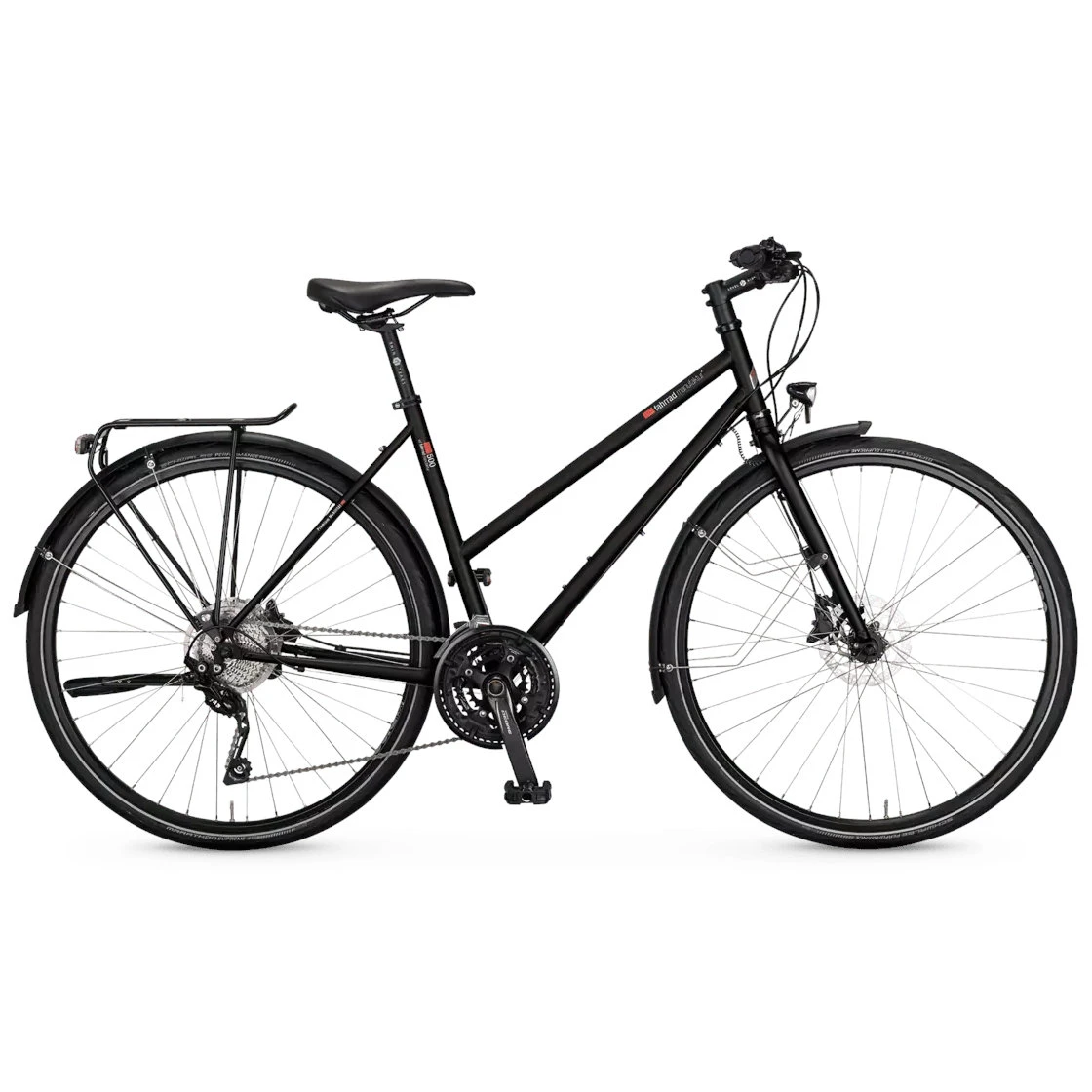 Niet zelden zijn trekkingfietsen van vsf fahrradmanufaktur het belangrijkste vervoermiddel en een integraal onderdeel van een op duurzaamheid gebaseerde levensfilosofie. Om aan de daaruit voortvloeiende eisen inzake duurzaamheid en comfort te voldoen, biedt vsf de T-500, een model dat bijzonder geschikt is voor dagelijks gebruik. In dit model is het robuuste stalen frame gecombineerd met een sportief 30-speed Deore versnellingssysteem van Shimano en andere beproefde componenten: zadel van Selle Royal, Racktime bagagedrager, Busch & Müller verlichtingssysteem, Schwalbe Marathon banden of handvatten van Herrmans – hier wacht u een robuuste, duurzame trekkingfiets voor sportieve rijders.