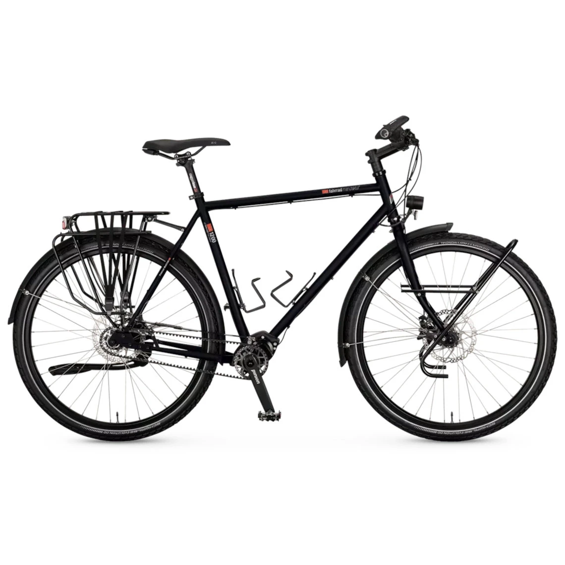 Voor iedereen die het grote avontuur zoekt, heeft vsf fahrradmanufaktur de TX-1200 uitgerust met een vrijwel onderhoudsvrije en bijzonder duurzame aandrijfcombinatie van Gates riemaandrijving en Pinion P1.18 tandwielen – een werkelijk uitstekende combinatie.
